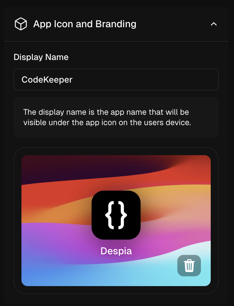 App Icon and Branding: Upload a PNG app icon with these specifications: