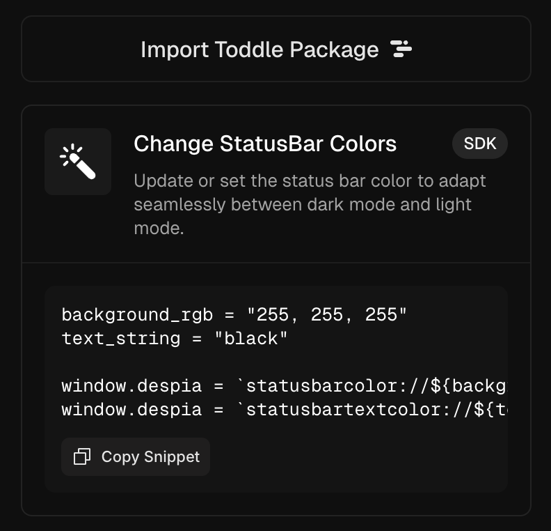 window.despia = `statusbartext'black'}`Step 6. Configure Native Logic